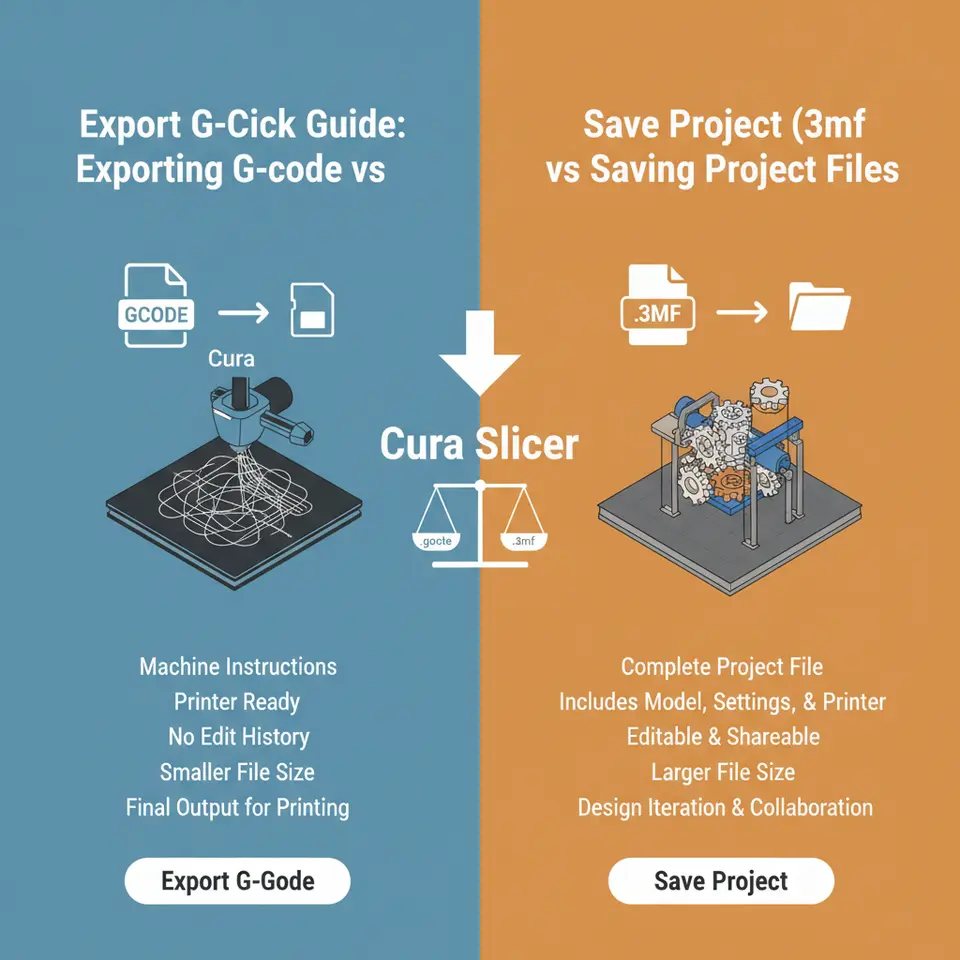 Cura Slicer Quick Guide: Exporting G‑Code vs Saving Project Files (.3MF vs .GCODE)