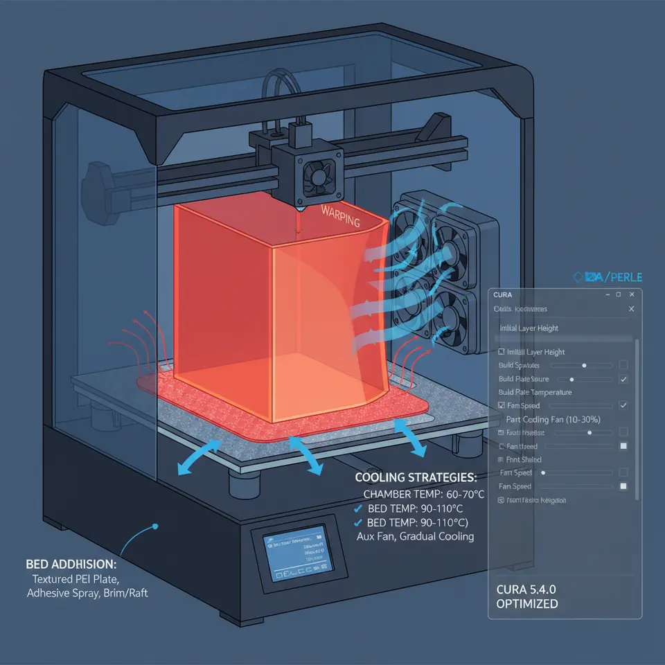 Cura Large‑Format Print Guide – Adhesion, Warping, Cooling